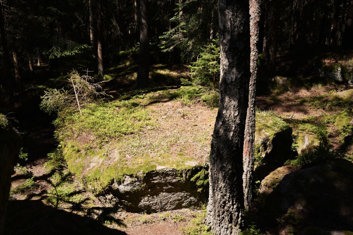 Der von mir als »Machtbezirk« bezeichnete Bereich umfasst die nähere Umgebung der sogenannten »Fahrthofer Höhlen« in der Nähe der »Luaga-Lucka«. Auf engem Raum findet sich eine Vielzahl von kleinen Höhlen, schmalen Gängen und großen Granitsteinblöcken.