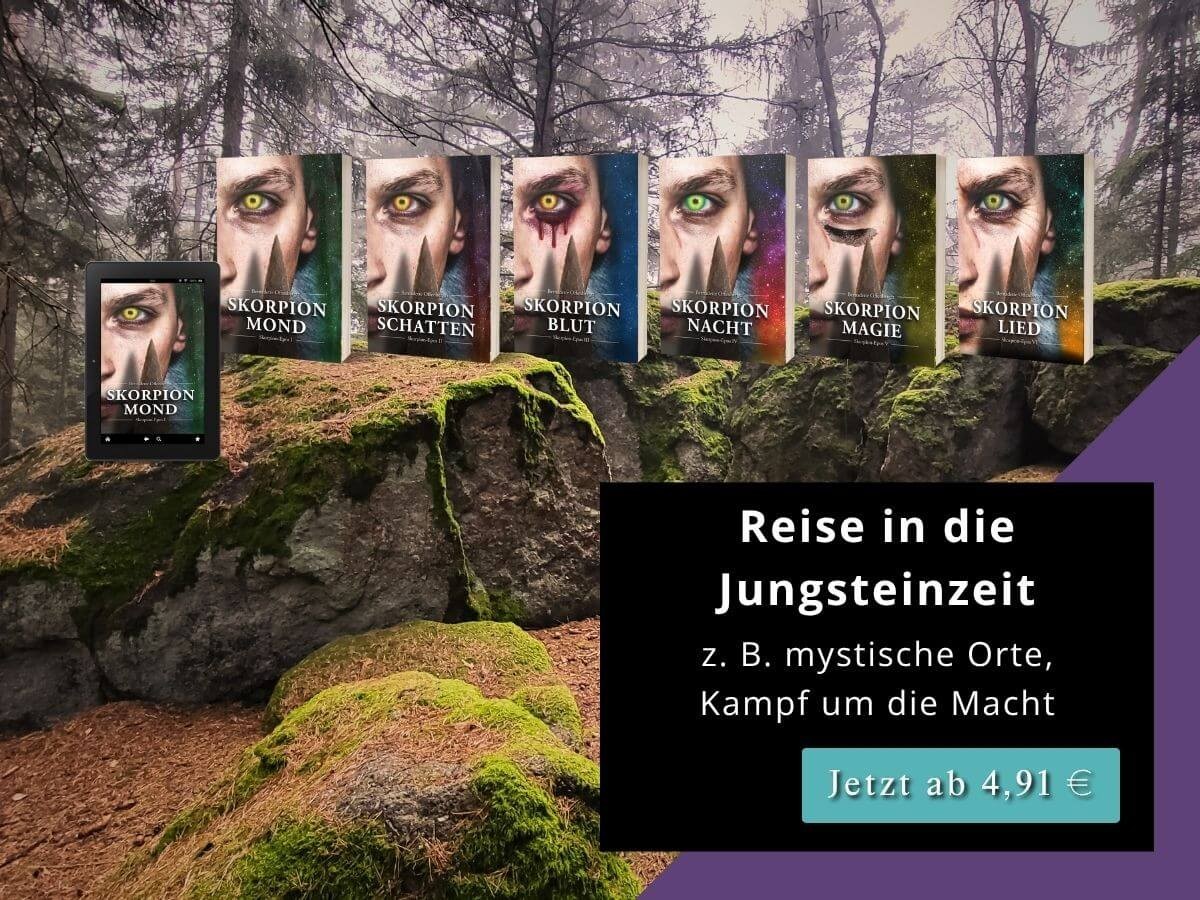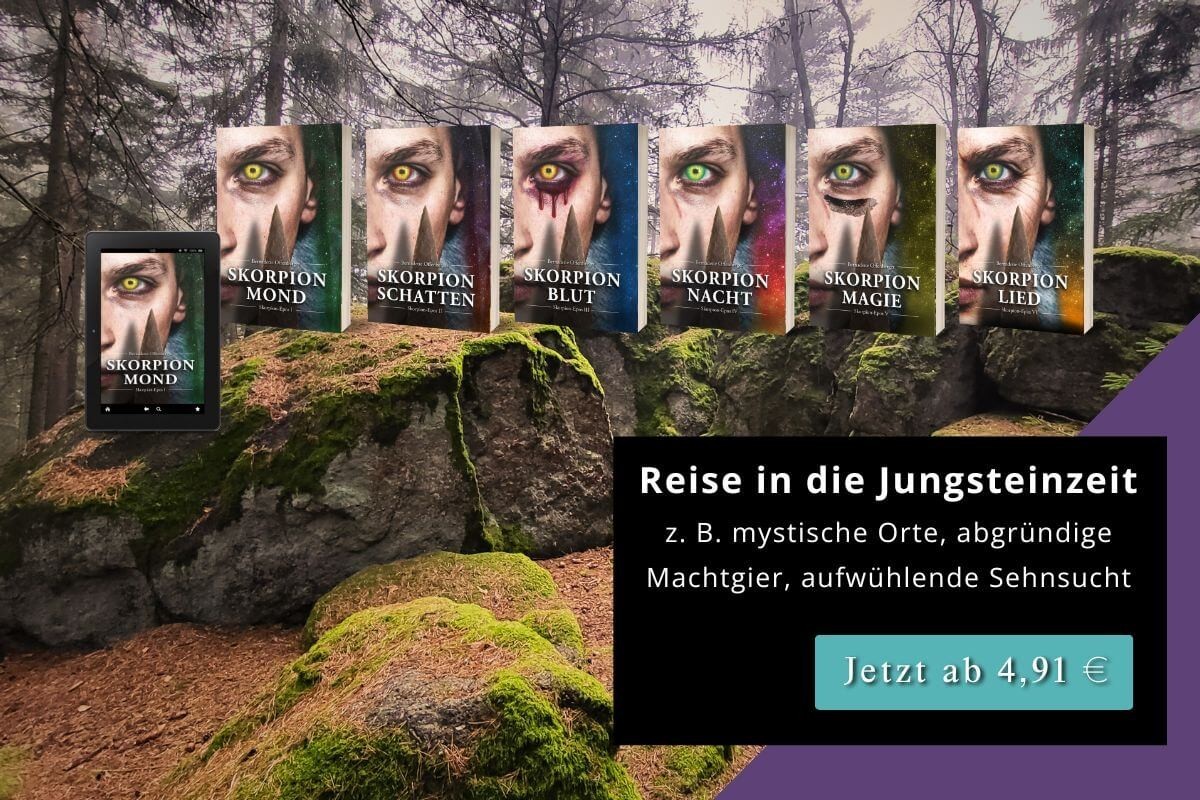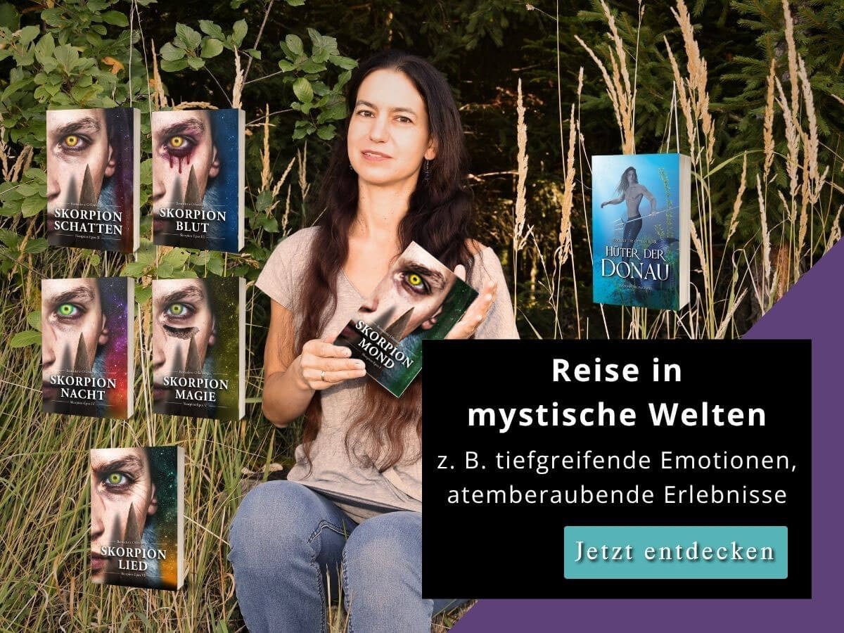 Wärst du gerne dabei, wenn eine Zeremonie zu Ehren der dunklen Göttin stattfindet? Wenn Beltane gefeiert wird? Oder wenn der Waldgott die Gestalt eines Hirsches mit menschlichem Gesicht annimmt? Dann bist du im Skorpion-Epos richtig. Darin zelebriere ich Rituale in aller Ausführlichkeit. Mal geht es um lichte Göttinnen und Götter – mal um die dunkle Göttin.